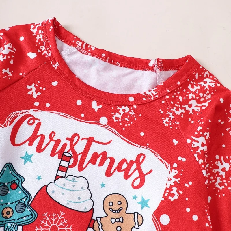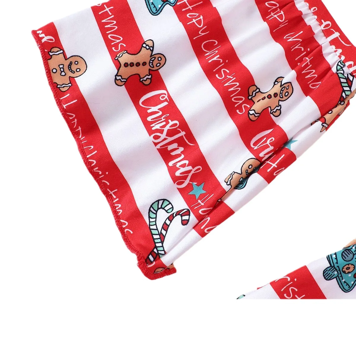 Autumn Winter Christmas Girls Short Sleeve Top Flared Pants Suit Striped Cotton